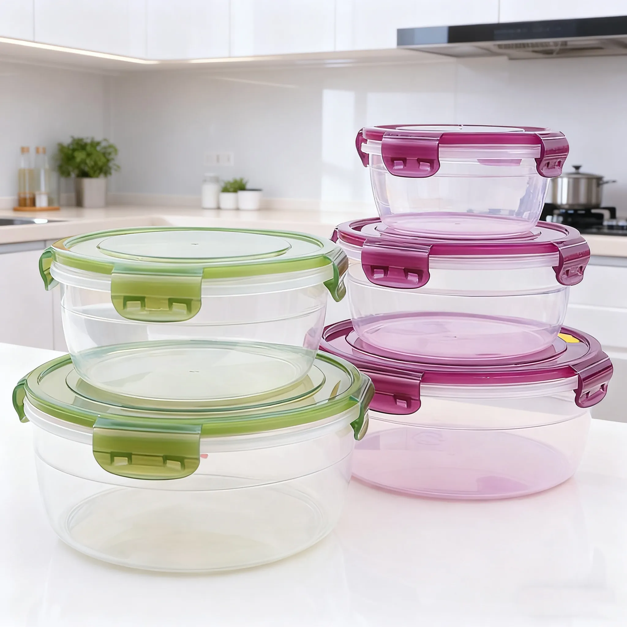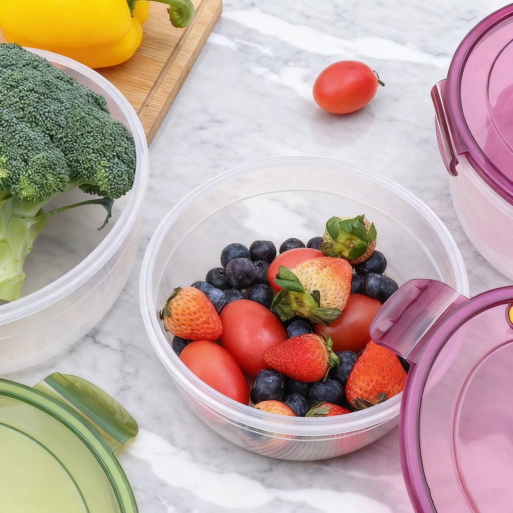 This storage box features a transparent material with fresh green airtight lids and comes in three different