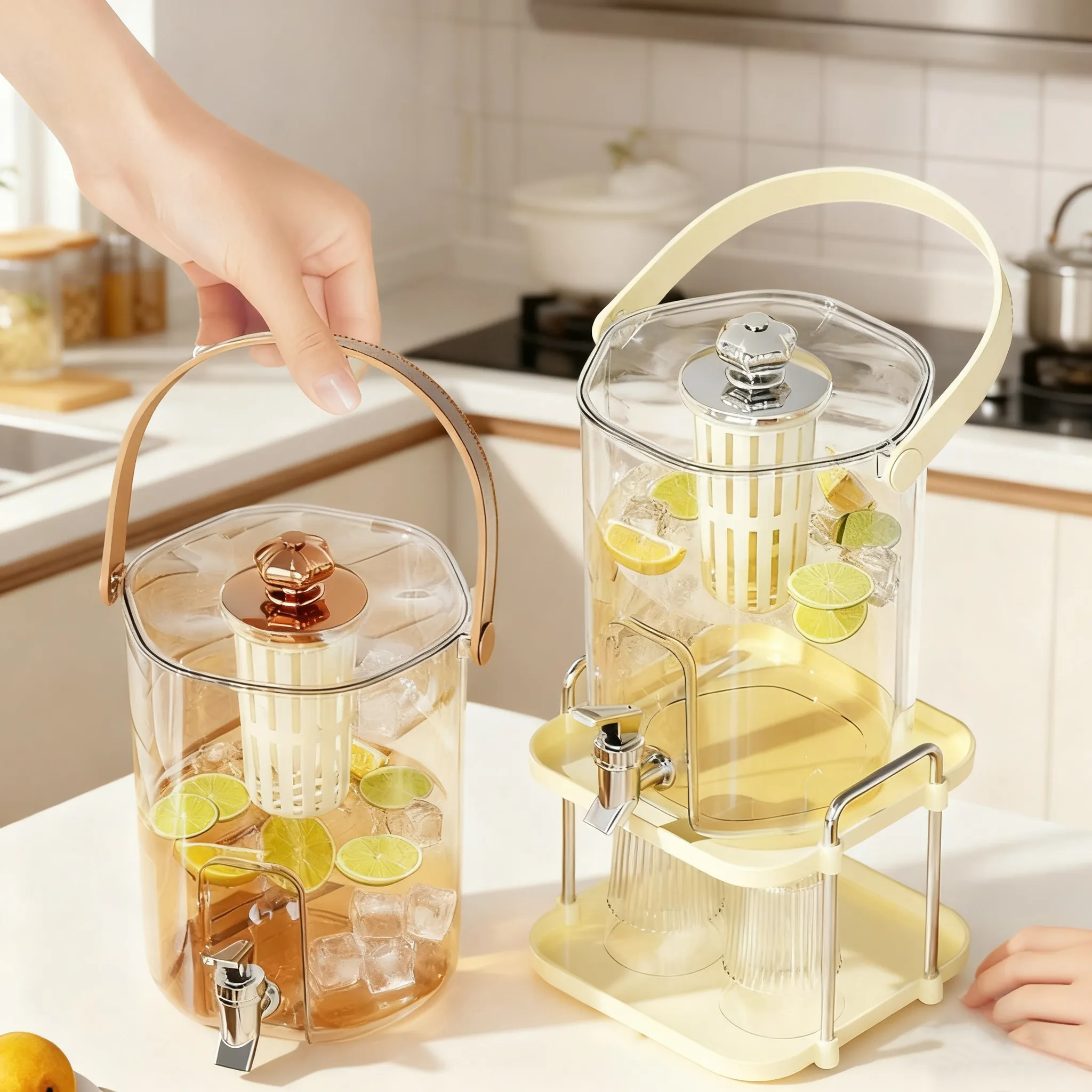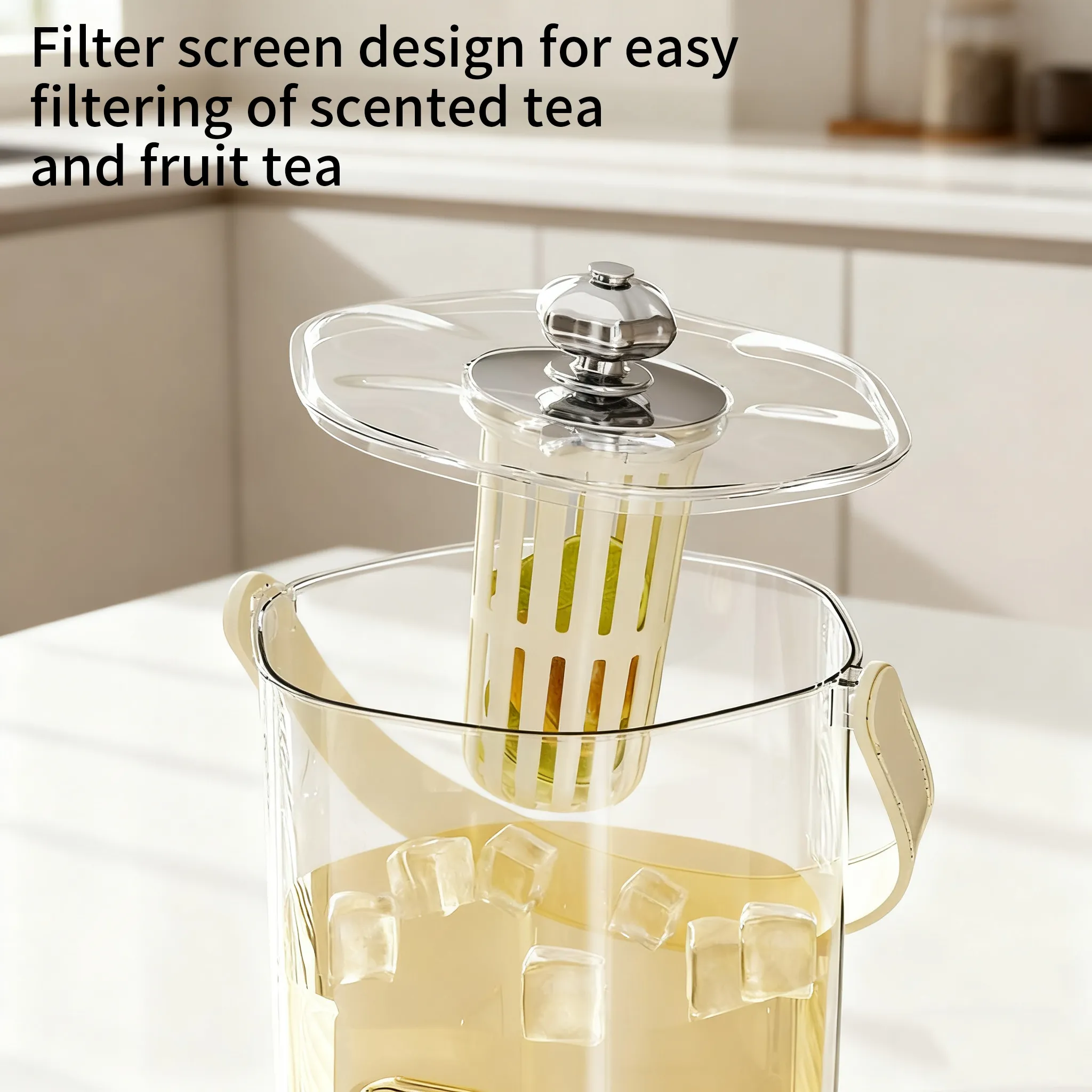 First, let's talk about the look. The transparent kettle body with the retro-style faucet and handle looks so classy when placed at home. Whether it's lemon water, fruit tea, or just plain cold water, seeing the layers of ingredients through the kettle is like a work of art. Friends will definitely ask where you got it when they come over!