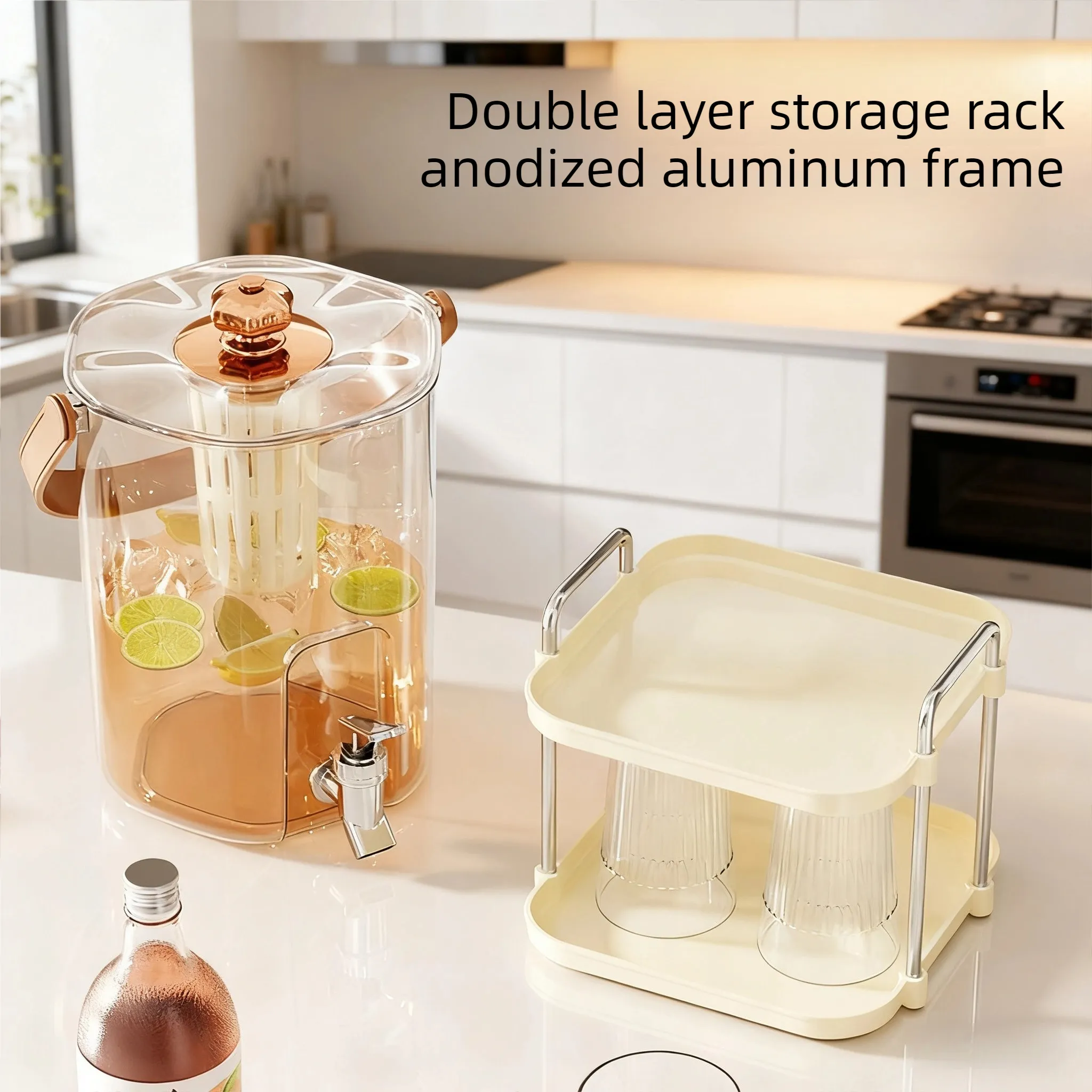 Oh, and the matching double-layer storage rack is also great. Made of anodized aluminum, it's stable for holding cups and small tableware, making the kitchen much tidier in an instant.
