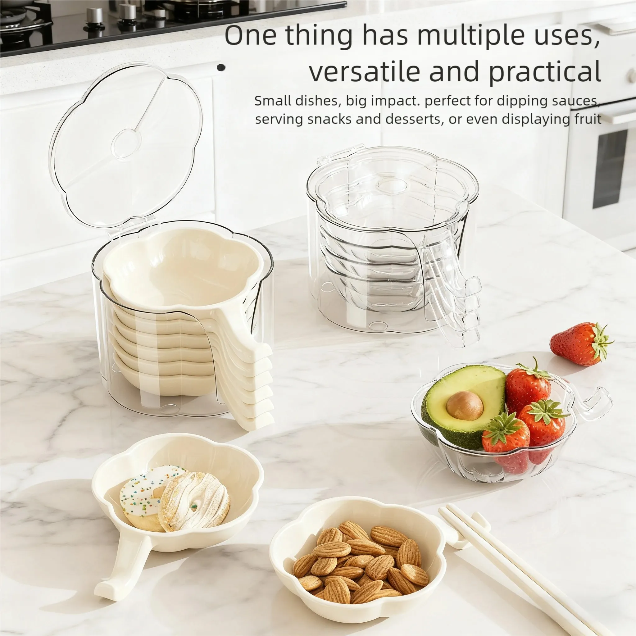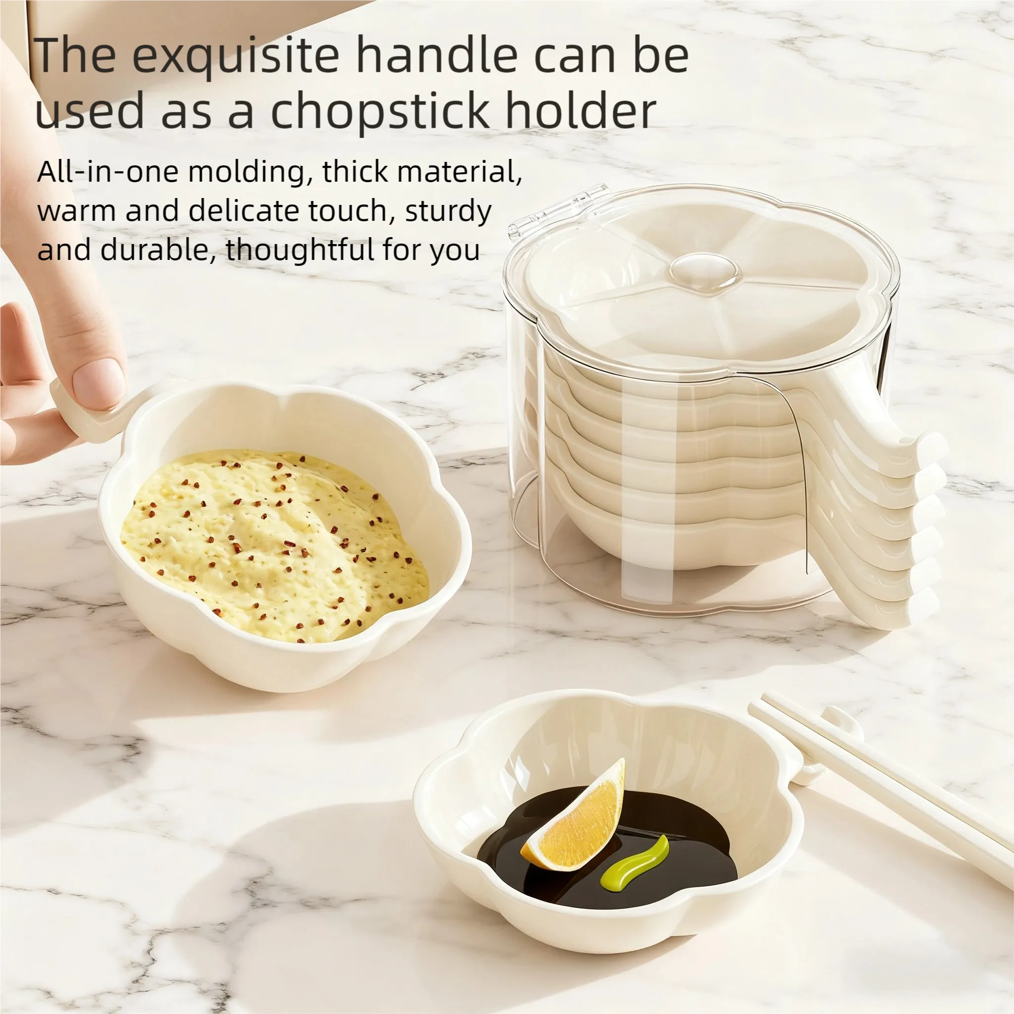 • Versatile Usability: It can not only hold various sauces and dips such as soy sauce, vinegar and salad dressing, but also serve as a snack plate for nuts and candies. Its handle design can also be used as a chopstick holder, and it can be useful in scenarios such as hot pot, Japanese cuisine and home - cooked meals, combining practicality and aesthetics.